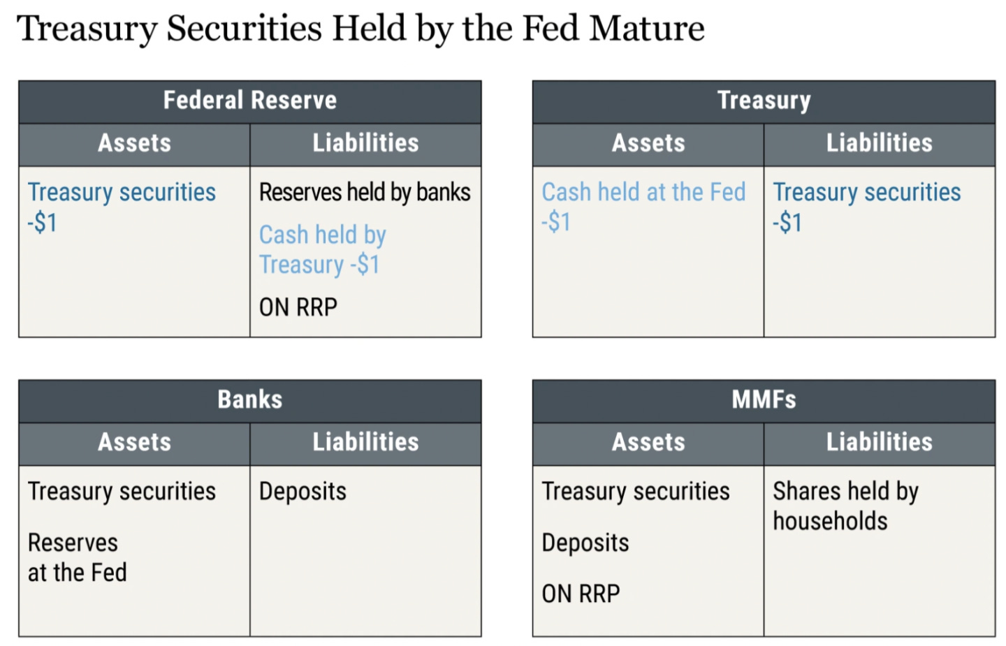 MMF 从财政部购买新证券,财政部将收益存放在美联储,将 TGA 余额恢复到美联储持有的国债到期之前的水平。